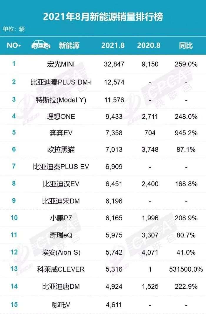 根据乘联会最新数据显示,2021年上半年,我国纯电微型车市场的累计销量达到了35.10万辆,同比增长599%。而在8月的新能源销量排行榜前中,宏光NIMIEV以32847辆的成绩又稳居榜首,同样是微小车型的长安奔奔EV、欧拉黑猫等小微电动车型子在1-8月的新能源销量排行榜中保持着前十的位置。