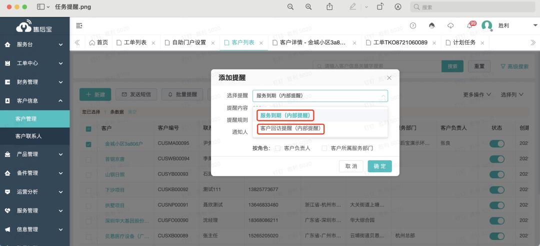 3、建立主动客户关怀机制:基于周期性的服务要求,进行自助的派单服务