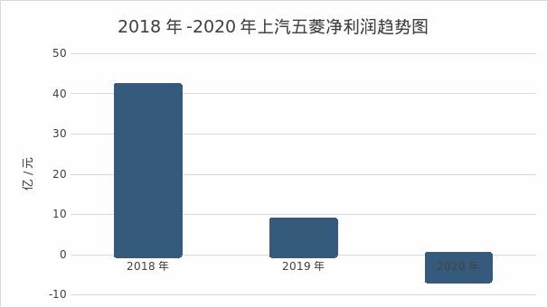 从财务数据上看,上汽五菱2019年净利润开始下滑,到2020年到达最低谷,而这一情况也反应在上汽集团的股价中。