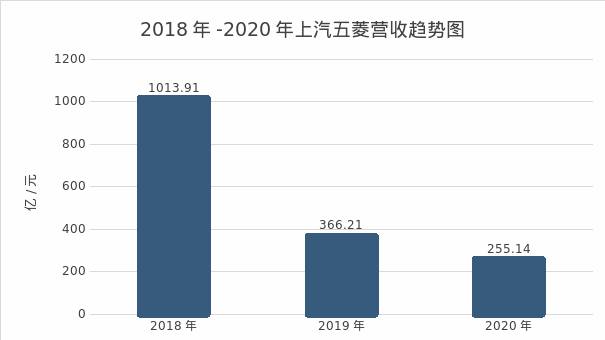 2018年上汽五菱营业收入为1013.91亿元,归母净利润41.87亿元。2019年上汽五菱营业收入366.21亿元,同比下跌63.88%;归母净利润8.43亿元,同比下跌79.86%。