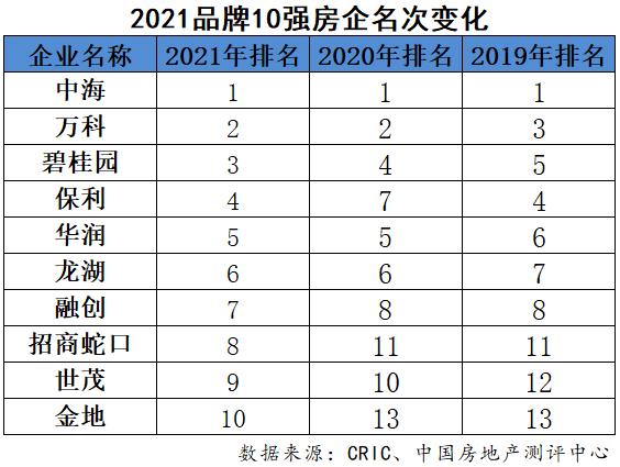 根据测评报告,榜单前三由中海、万科和碧桂园占据。中海继续位列榜首,品牌价值为751亿元,万科、碧桂园分别以669亿元和573亿元位列第二、第三位。保利发展、华润置地、龙湖、融创中国、招商蛇口、世茂和金地分列四到十位。报告显示,近几年50强品牌房企位次基本稳定,2021年50强榜单变动率为14%,20强榜单变动率为10%,10强榜单变动率为20%。
