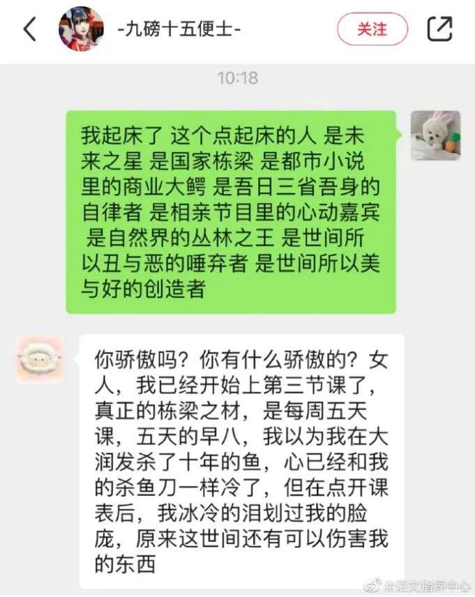 这种夸张的“文体”最初源自豆瓣小组,随后被不断模仿——衍生出了跟客服对话、跟杠精对线、表达对爱豆的狂热喜爱,或是朋友之间的语言游戏。