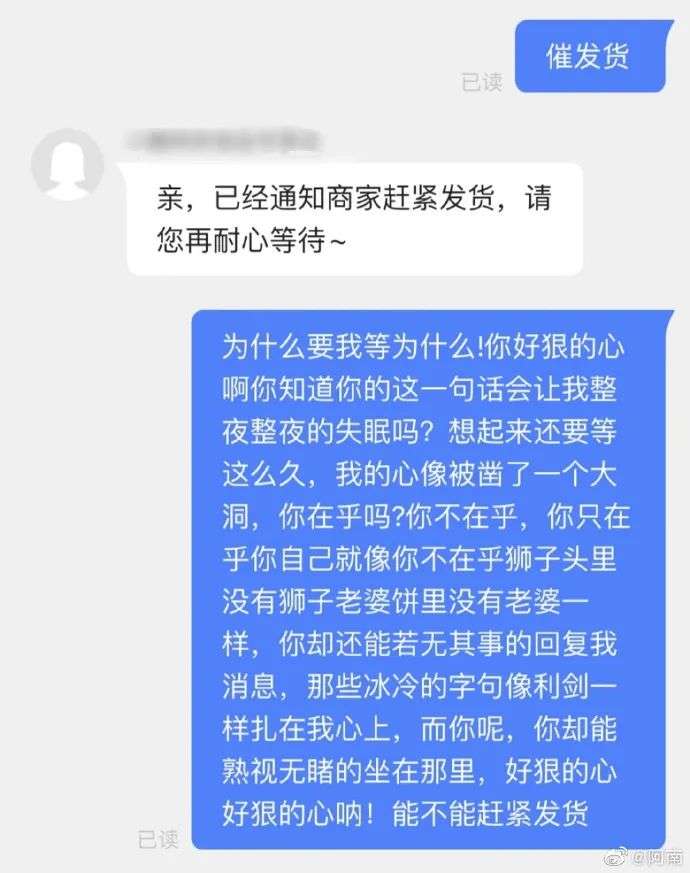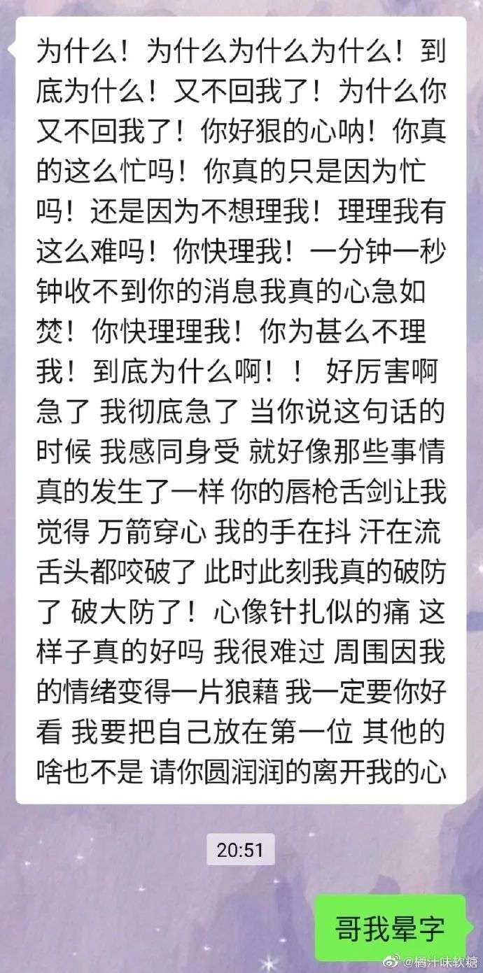 比如当男朋友没有在需要的时候给上安慰,只敷衍地发了几个表情,发疯文学便催生了: