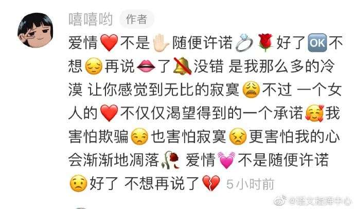 更自由奔放的人,则半倾诉半戏谑地将情绪融进大段的胡言乱语,以一种互联网弄潮儿的形象,完成细腻情绪的发泄。