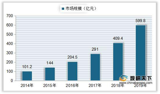 根据相关数据统计,自2014年来,我国儿童体育培训行业市场规模快速增长,从101.2亿元增长至2018年的409.4亿元,复合年增长率达到41.82%;2019年中国儿童体育培训市场规模达到599.8亿元,同比增长46.51%。