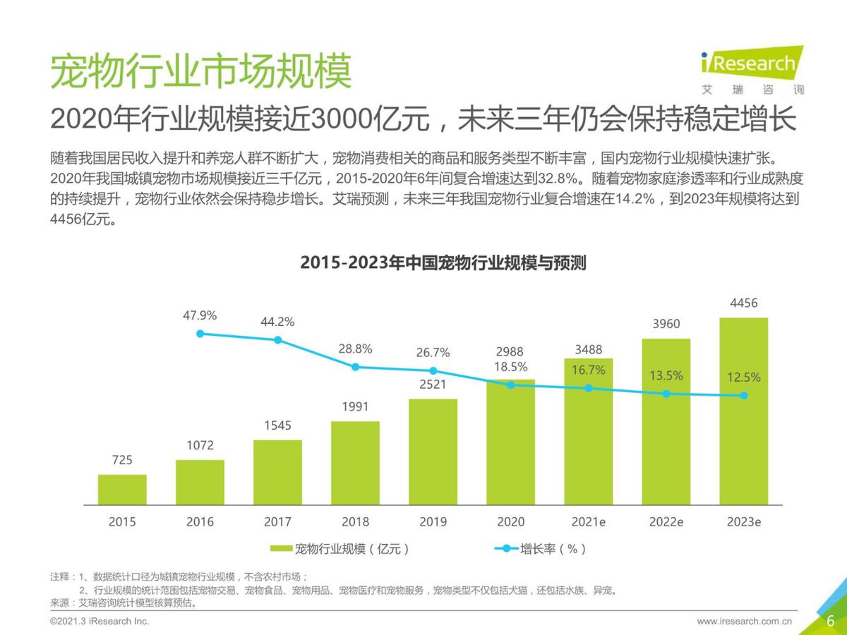 2020年,仅中国宠物行业规模就逼近3000亿元。可以预见的是,作为人类精神需求的一部分,伴随着宠物行业各项配套的完善,更多的爱宠人士会从“云养宠”转变为“铲屎官”。时势造英雄,一批宠物行业的相关公司也将在这个过程中崛起。