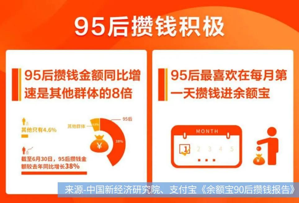 据余额宝数据显示,截至6月30日,95后通过余额宝货基(货币基金)攒钱的金额较2020年同期增长38%,而其他群体该数值为4.6%。