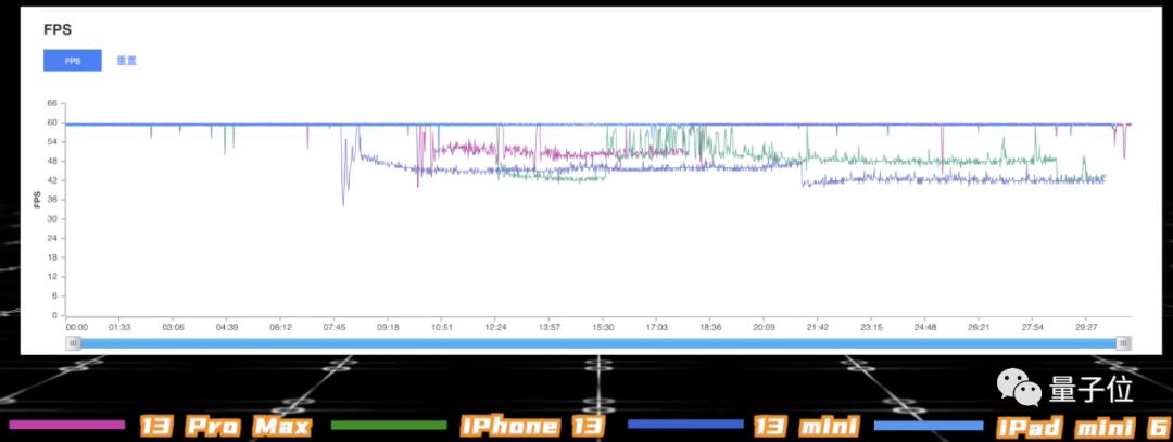 而iPad Mini 6则比较恐怖:帧率几乎一直维持在60上下。