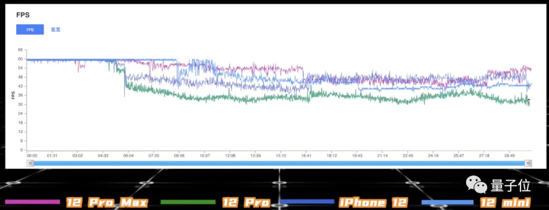 而只要在机身上加一个散热背夹,之前表现最差的iPhone12 Pro就能稳定跑出60帧(即使是在30分钟之后的实际游戏阶段):