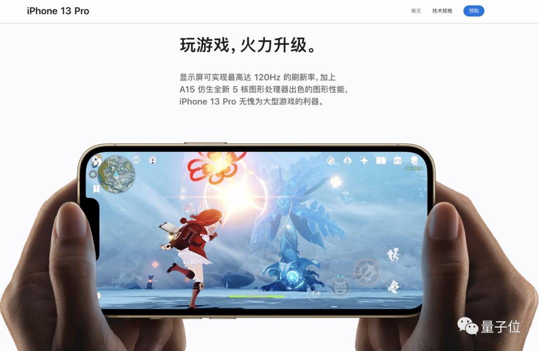 苹果官网中文版的产品介绍里,还特意用了大家喜闻乐见的玩原神来演示A15仿生芯片出色的图形性能。