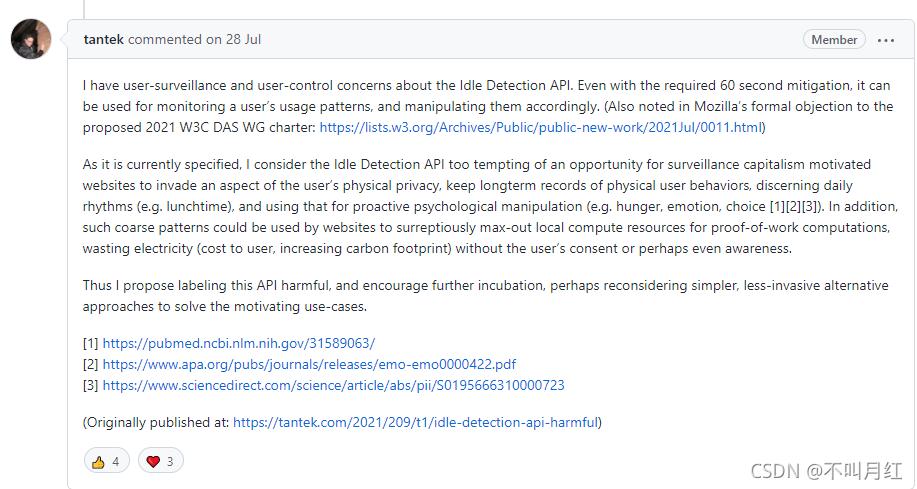 Tantek Çelik在GitHub发表对Idle Detection API的看法