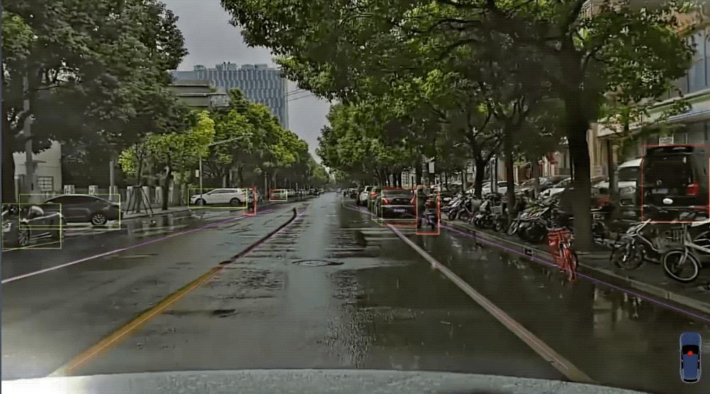 在有车辆加塞的时候,车辆会自动减速避让,而非机动车如果距离车辆非常接近的时候,车辆也会自动减速避让。