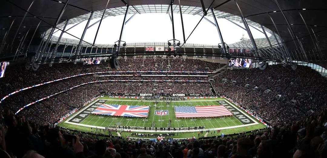 而托特纳姆热刺早在2015年便与NFL达成了10年合作协议,每年在热刺主场举办两场伦敦赛,同时耗费12亿美元建造了第一座美国领土外的NFL球场,提供可伸缩的人工草皮场地。