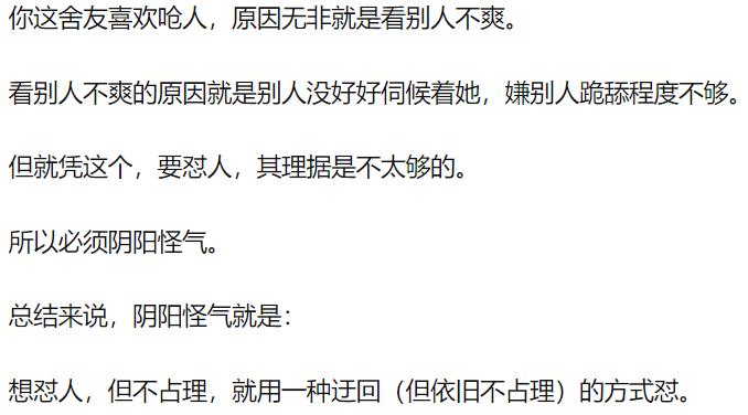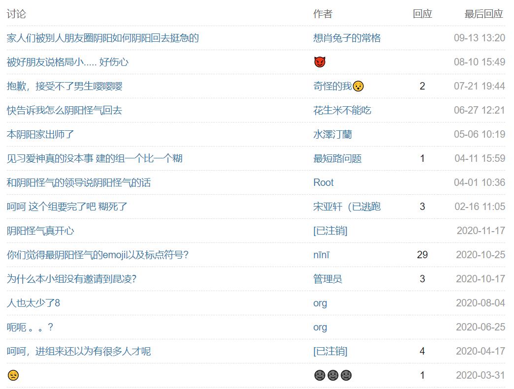 豆瓣小组内的讨论多集中在阴阳怪气地怼人上,比如自己在生活、工作上遇到一些不如意的事情需要发泄或隐晦地表达对对方的不满。