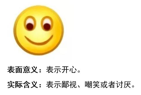 “呵呵”加上死亡微笑的表情更是一绝。比如下面这个表情,很多年纪大一些的人认为这是一个表示友好的微笑,但在当下的网络语境中,这个表情被大家称为死亡微笑,让人瘆得慌。