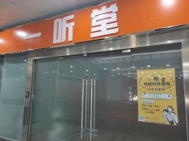 占据银网中心二层的一听堂,将最显眼的位置留给了「场地对外使用」的广告,此前的K12的语文课堂成了教师教研聚会的场所。