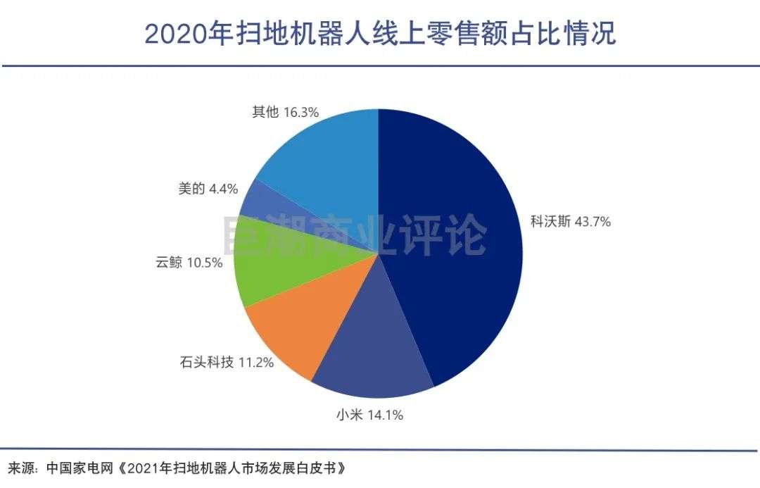 据中国家电网发布的《2021年扫地机器人市场发展白皮书》,2020年线上市场科沃斯以43.8%的市场销售额份额稳居行业第一,小米和石头科技则位列二、三名(小米扫地机器人由石头科技代工),销售额占比分别为14.1%和11.2%;而在线下市场中,科沃斯销售额占比接近80%,一家独大(扫地机器人的线下销售占比仅为8%)。