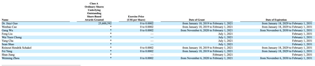 瑞幸高层所获股权激励情况,图源:瑞幸2020年年报
