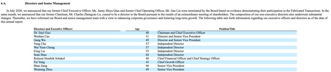 瑞幸董事及核心高管名单,图源:瑞幸2020年年报