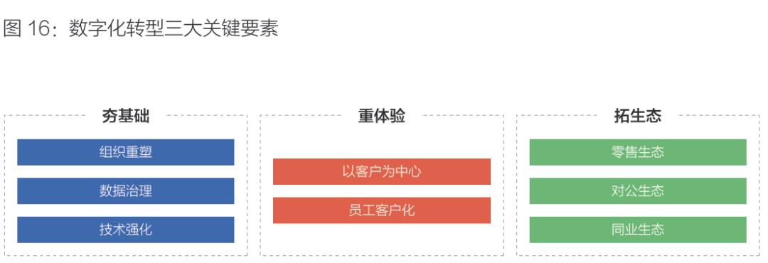 前述白皮书也提到,区域性银行的数字化转型有三大要素——「夯基础」、「重体验」与「拓生态」。其中所包含的数据治理、打造技术底座等基础设施建设,打造线上线下全渠道统一的客户体验,以及拓展零售、公司业务场景合作都是围绕这一点展开的。