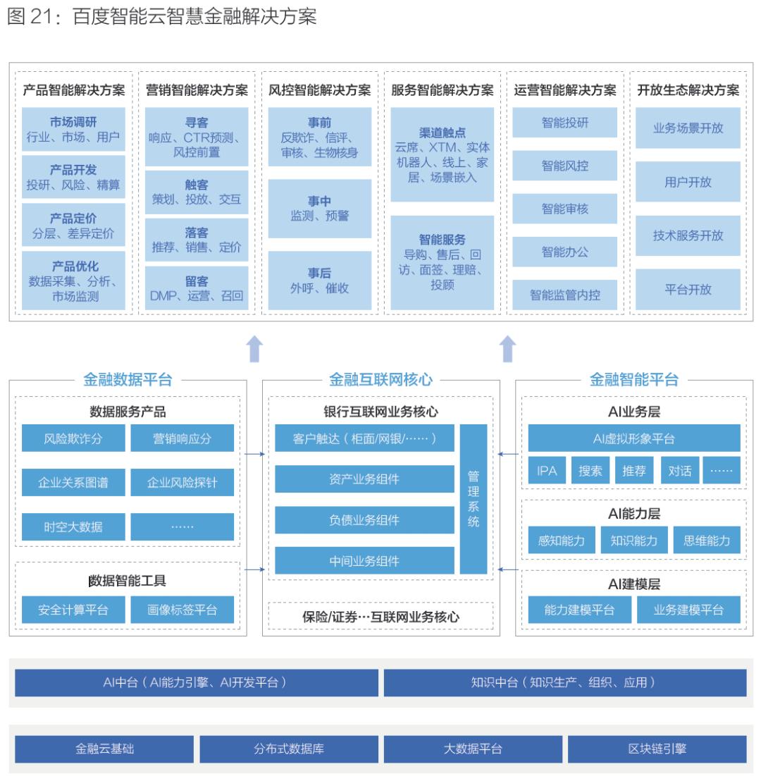 它们分别是自动驾驶、数字城市运营、机器翻译、个人智能助手、生物计算、AI芯片、深度学习框架和知识管理,随着百度AI积累的厚度不断增加,将有越来越多的能力可以开放给金融业。