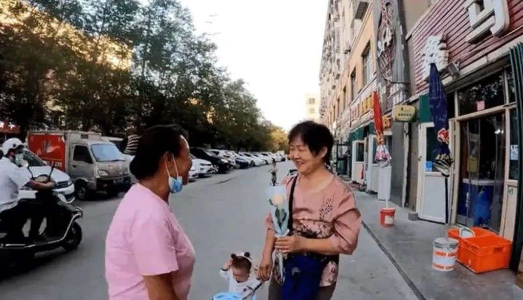 这不妨碍陌生的她们温暖彼此。那位带孙子的老人小心翼翼地把玫瑰花包到小孩的衣服里面——新疆的太阳很毒,她害怕那朵花被晒蔫了,“我感觉她可能也是没有收到过玫瑰花的人”。