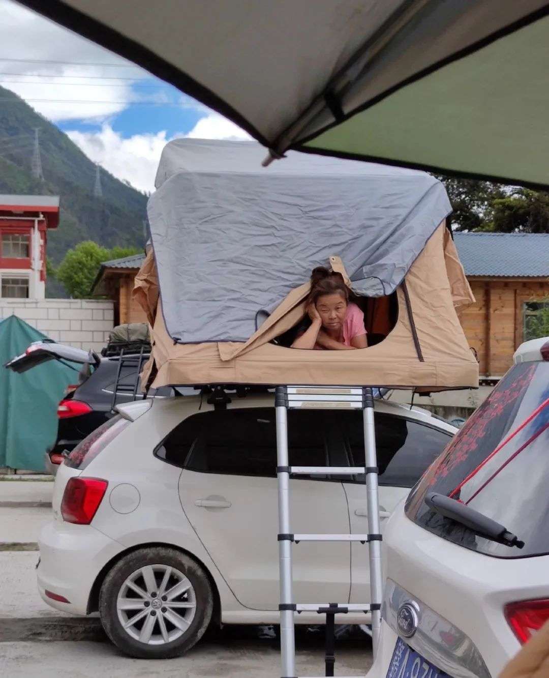 外孙想睡午觉,苏敏就把车顶帐篷撑开,爬上爬下整理床铺。两个四五岁的外孙在车下一声声地喊着姥姥,姥姥,苏敏动作麻利,却怎么也赶不上外孙的催促,着急地眉头紧锁,潇洒不再,仿佛又回到了那个被家事缠身的中年妇女苏敏。