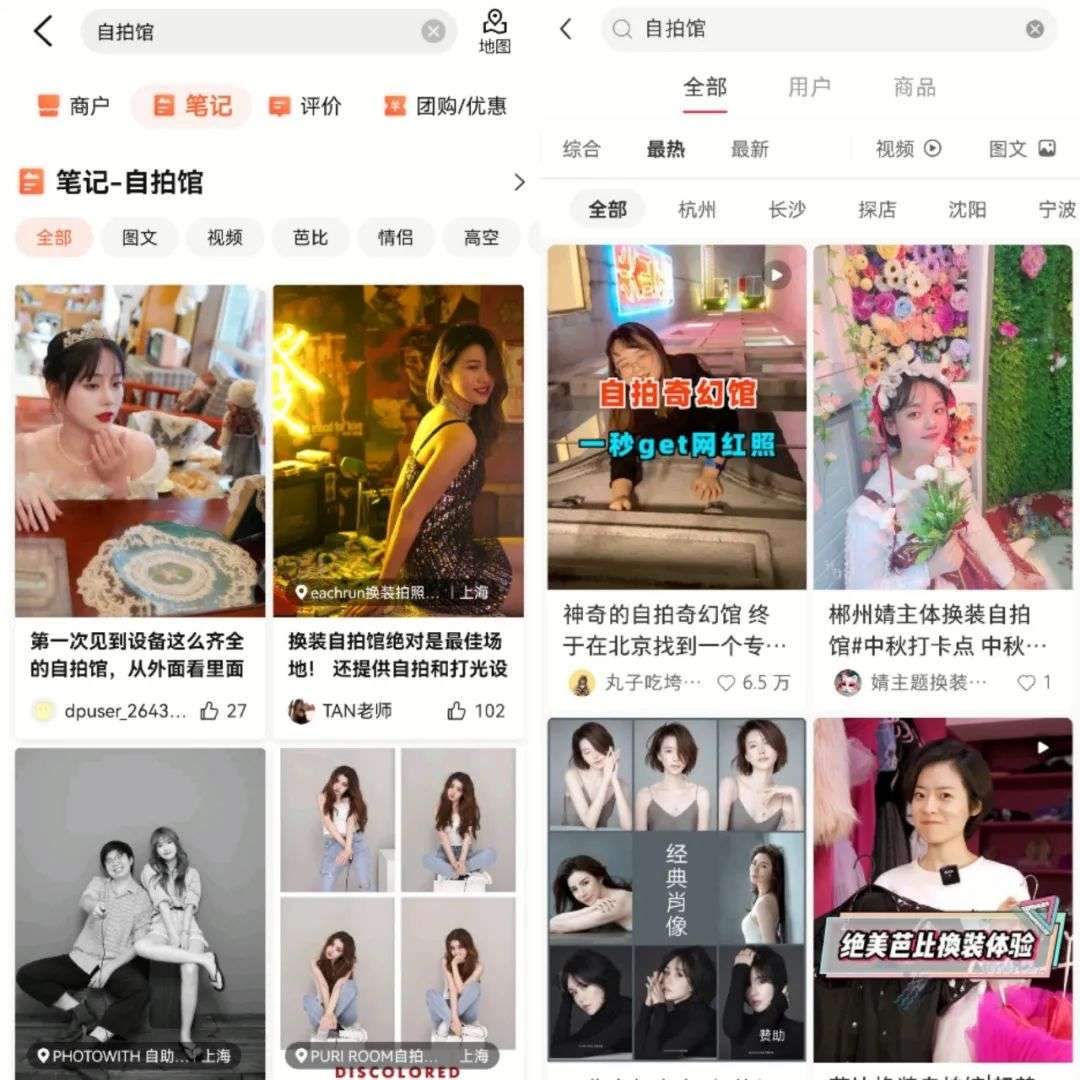 在大众点评和小红书上,关于自拍馆的种草笔记和广告多了起来。