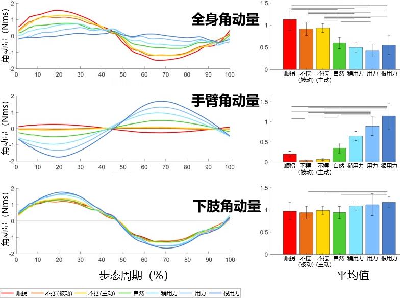 不同摆臂方式下的全身、手臂及下肢角动量对比 | 参考文献[2]