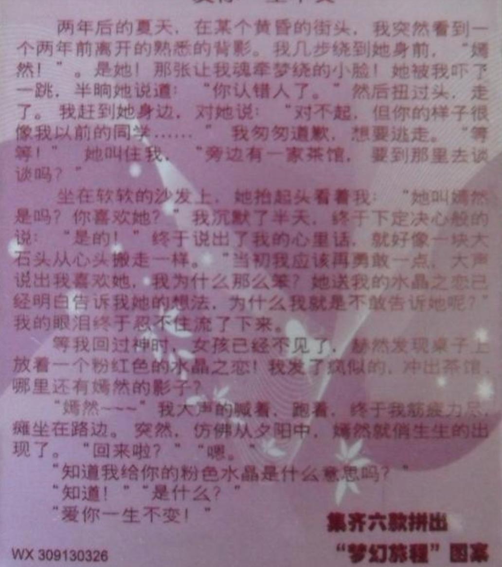 看见朋友圈八零后女青年对水晶之恋没有小故事的惋惜,想起了那些年被六款水晶之恋支配的恐惧。为了凑足“梦幻旅程”,一众女孩淀粉超标。