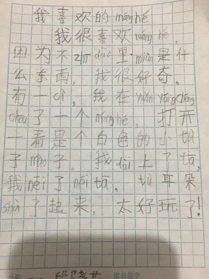 这么大点的孩子,已经有足够的能力表达自己的情绪。如“每次都能给我带来不一样的惊喜”等等。这么一比,我快乐时表达的“哈哈哈哈哈哈哈”相形见绌。
