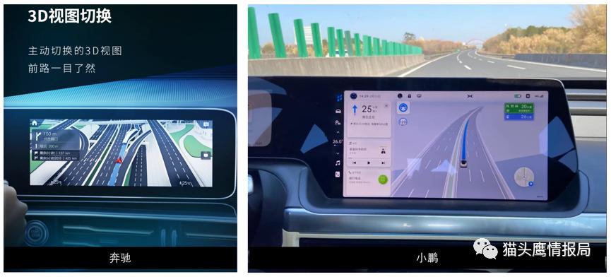 奔驰3D导航视图VS 小鹏P7 3D导航视图