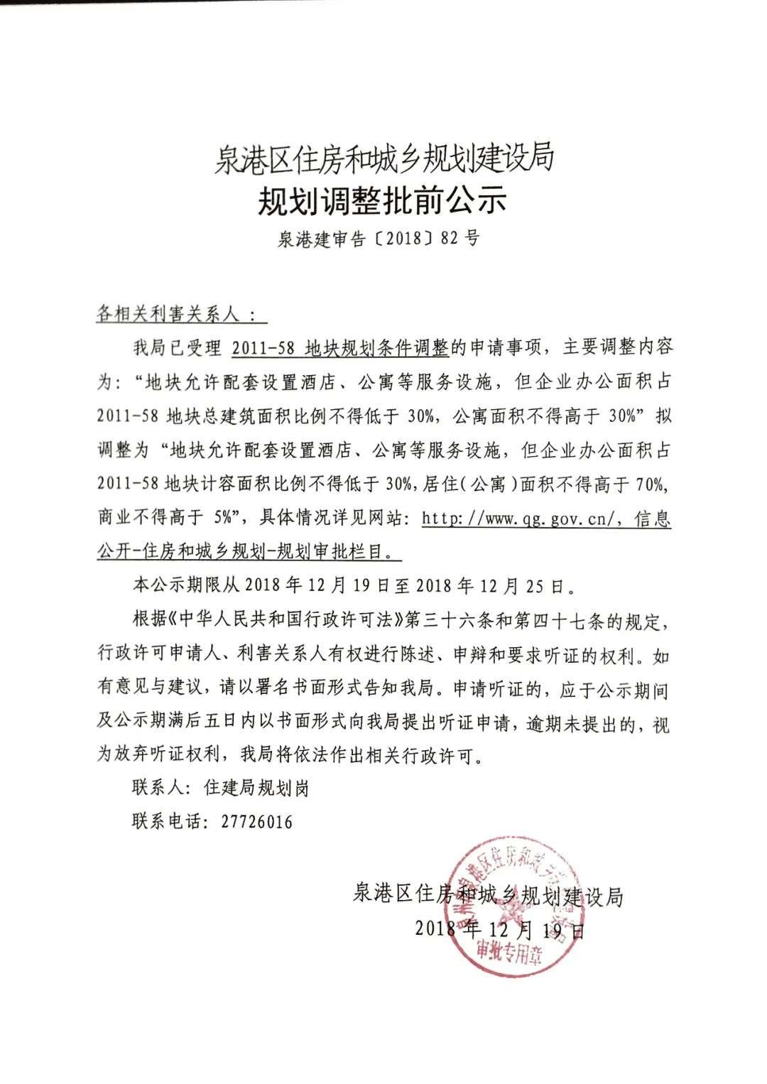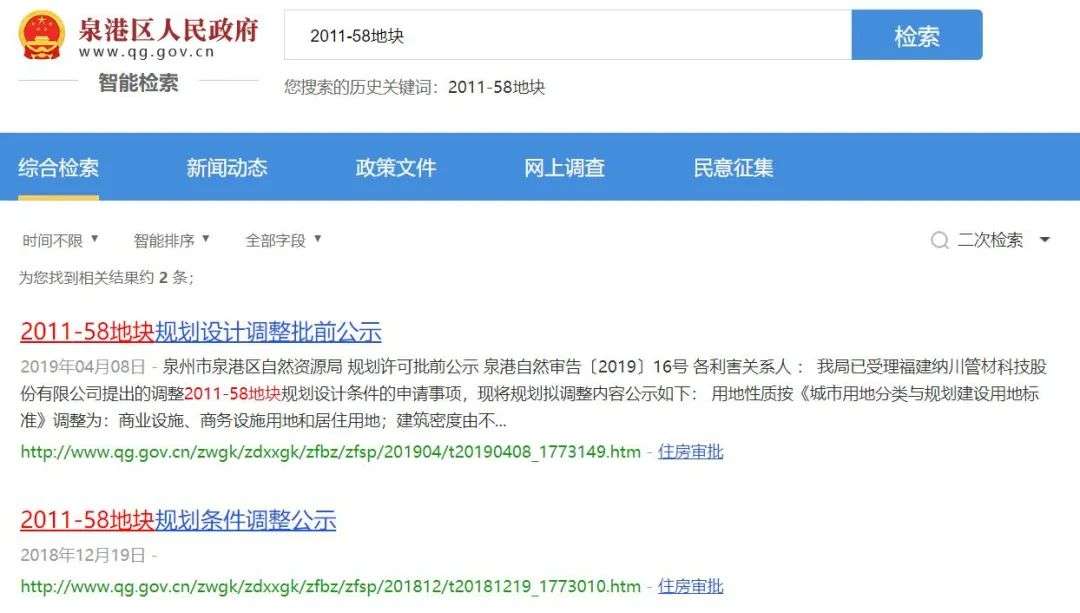 在泉港区政府官网上,有两条关于2011-58号地块的信息,分别是2018年12月的2011-58地块规划条件调整公示和2019年4月的2011-58地块规划设计调整批前公示。