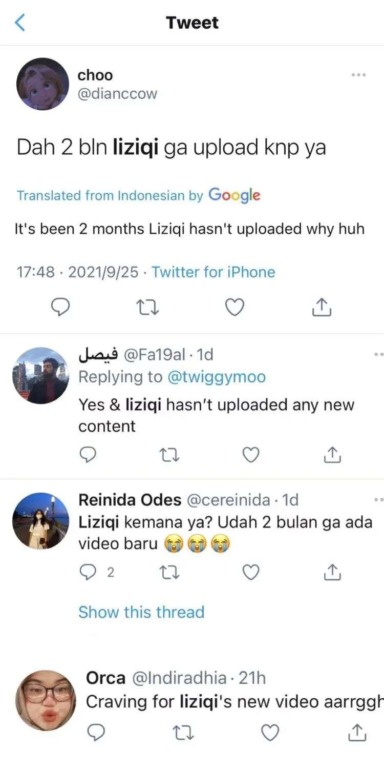 Twitter中搜索“liziqi”,也会看到很多用户对李子柒的关切与担忧