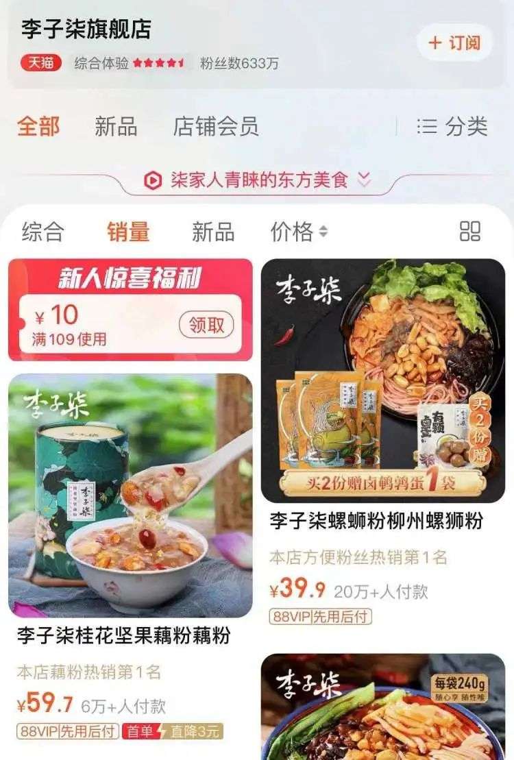 不仅如此,从李子柒天猫旗舰店的企业资质来看,这家品牌店的归属权仍属于微念。包括螺狮粉、紫薯蒸米糕、藕粉在内的爆款商品,让微念顺利地进军到了新消费领域,为了把控供应链端,微念还亲自到柳州投资建厂生产螺蛳粉。