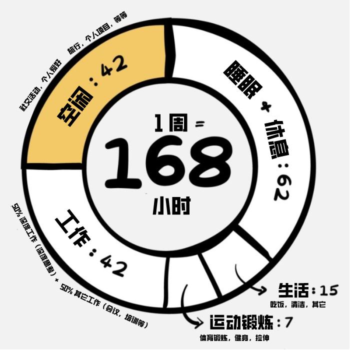 但是,每周一共有多少时间,这是固定的,这是我们都无法改变的。此外,我们还无法改变的,还有时间的流逝速度。
