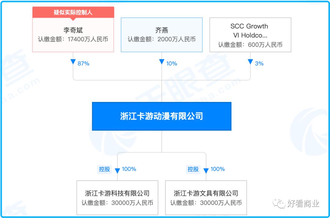 据天眼查,SCC Growth VI Holdco AD,Ltd是红杉资本中国基金旗下的投资基金。信息变更后,SCC Growth VI Holdco AD,Ltd在卡游动漫持股3%,认缴金额为600万元人民币。