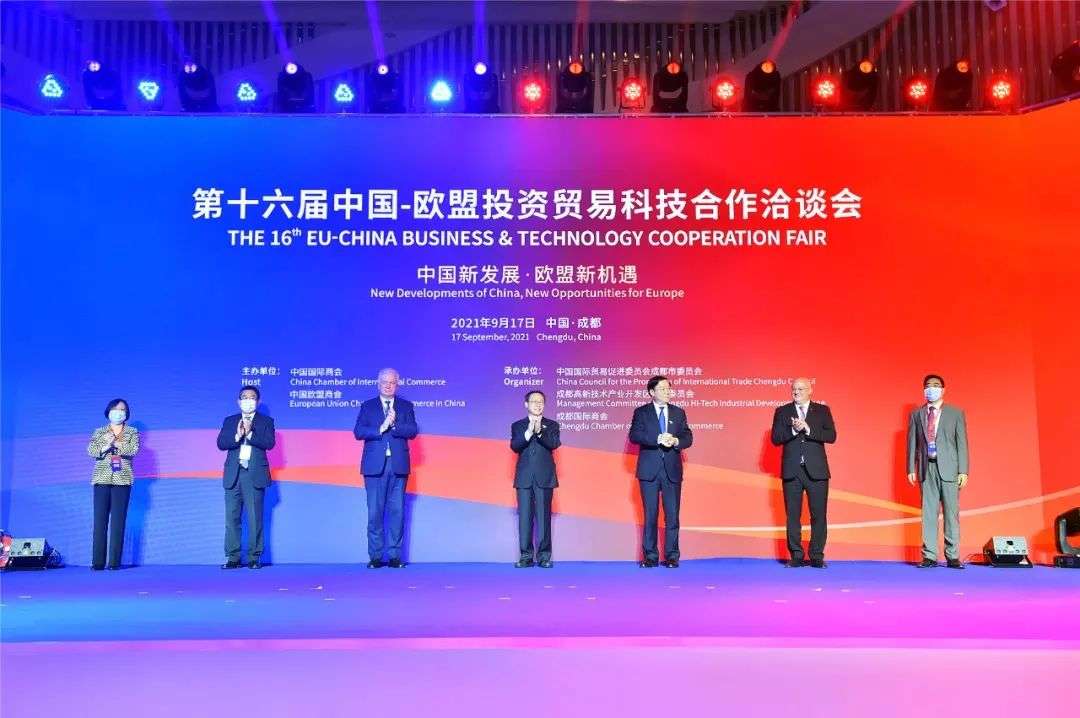 9月17日,由中国国际商会、中国欧盟商会主办的第十六届中国—欧盟投资贸易科技合作洽谈会(以下简称欧洽会)在成都召开。本届欧洽会以“中国新发展,欧盟新机遇”为主题,聚焦开放投资、科技创新、碳达峰/碳中和等领域开展探讨合作。本次大会,也为成都企业开启了中欧经贸合作的新篇章。