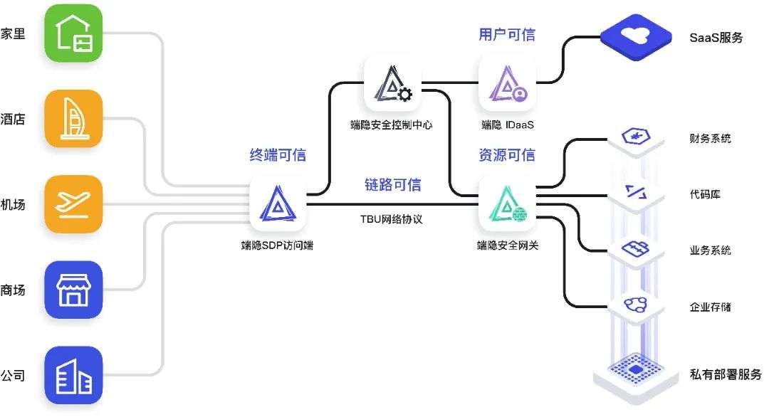 由云山雾隐研发的零信任安全解决方案——端隐SDP,为企业提供多云融合的安全解决方案,多个云复用同一个零信任安全控制中心,打通分散的业务系统,SaaS服务、腾讯云、华为云、阿里云及本地服务实现统一管理,无需花费成本即可适配不同服务商的访问控制策略。作为新一代企业内部资源访问权限管控系统,不仅能帮助企业员工在任意地点访问和使用公司内部的所有系统及应用,同时也能帮助企业建立“人-身份-设备-资源”的权限链条,实现访问人员A在B终端设备上才能访问企业内部C应用,做到应用级别细粒度的内部权限控制,适用于解决企业内部的入职离职权限管理、账密管理、统一身份认证、远程办公、远程运维等问题。