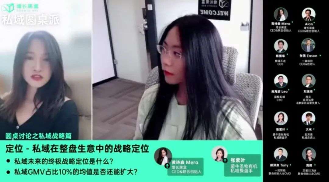 8月24日,增长黑盒组织了一场主题为“私域圆桌派”的直播论坛,增长黑盒CEO Shimiao与8位行业一线的品牌操盘手、私域掌舵人、数字化专家一起,就私域的战略定位和目标、私域组织的搭建,以及私域中的“人、货、场”展开了探讨;