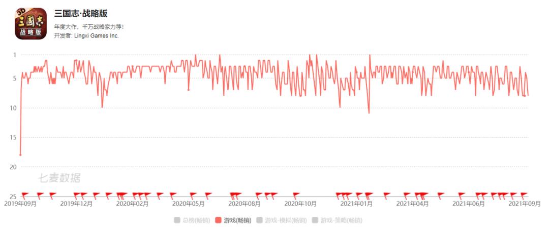 根据QuestMobile的数据显示,《三国志·战略版》上线次月MAU就突破了170万,一年后游戏30日留存保持在20%以上,持续运营之下游戏在2021年已经稳定在200万MAU的水平。