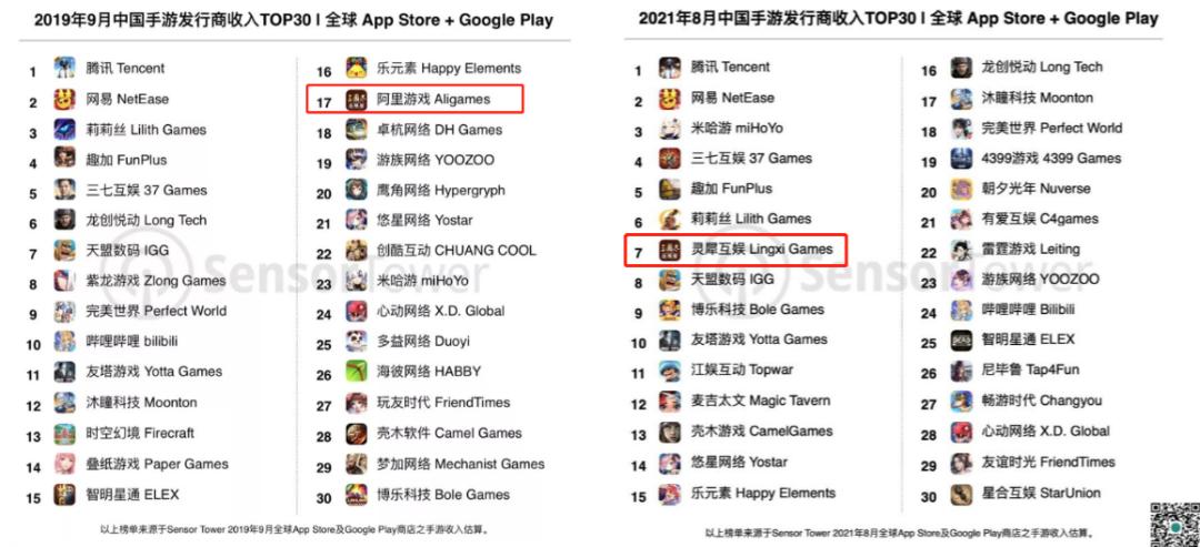 《三国志·战略版》的上线意味着游戏业务正式走入上升期的正轨。2019年9月20日,游戏的上线首次将阿里互娱抬进了SensorTower的手游厂商收入榜TOP20,并且阿里互娱在之后2年里上升并保持在TOP10。