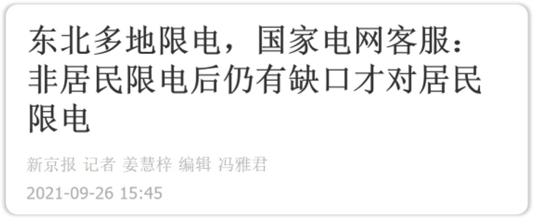 《东北多地限电,国家|电网客服:非居民限电后仍有缺口才对居民限电》