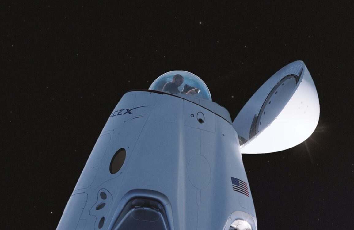 译者注:SpaceX公司的“灵感4”发射任务,是由猎鹰9号火箭(Falcon 9)执行的。整个火箭从下往上依次由一级推进器、级间段、二级推进器和载人龙飞船组成。其中,宇航员就坐在载人龙飞船中,其顶部还可以打开,以方便全方位欣赏星空美景。这一设计,也完爆维珍银河和蓝色起源,他们的飞船只能通过小窗户放眼宇宙。