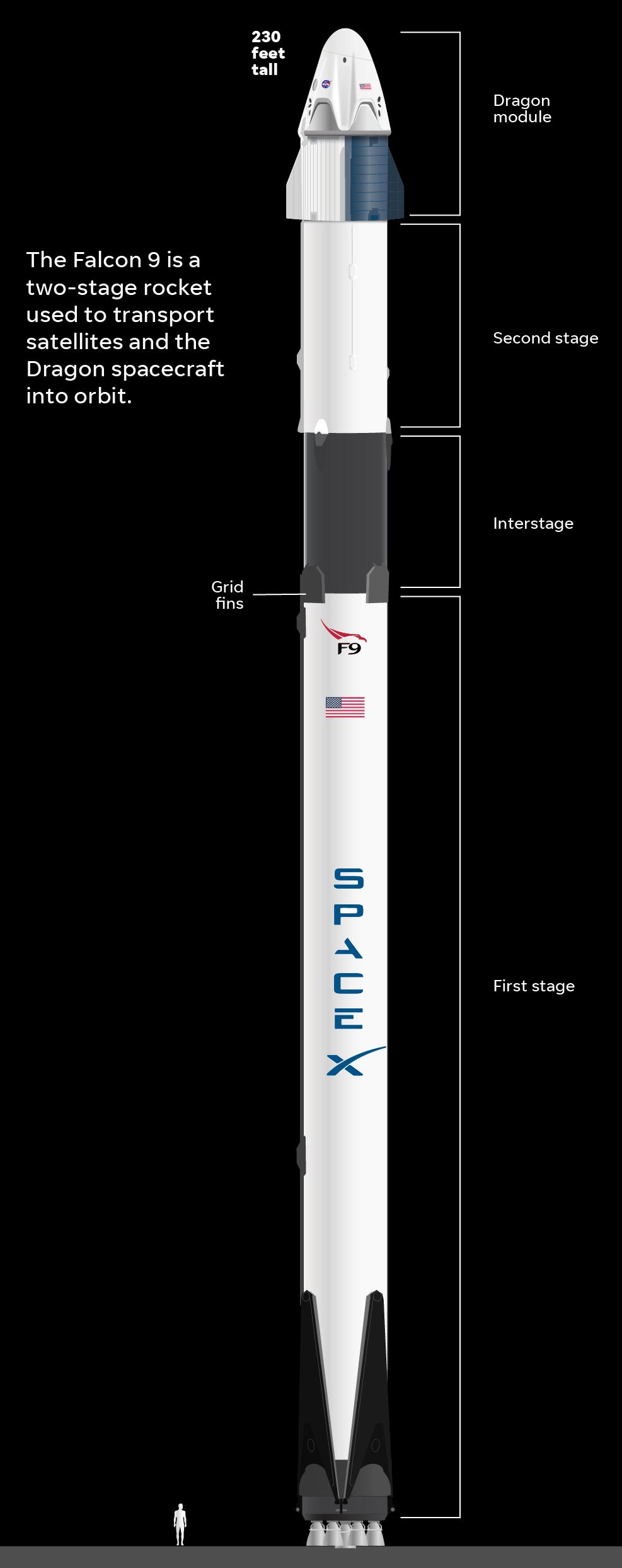 2020年5月底,猎鹰9号运载火箭搭载载人龙飞船示范2号(DM-2)和两名宇航员在肯尼迪航天中心的发射台发射升空。这是自十年前NASA的航天飞机退役之后,从美国本土升空的首次太空任务,也是SpaceX公司首次载人航天任务。