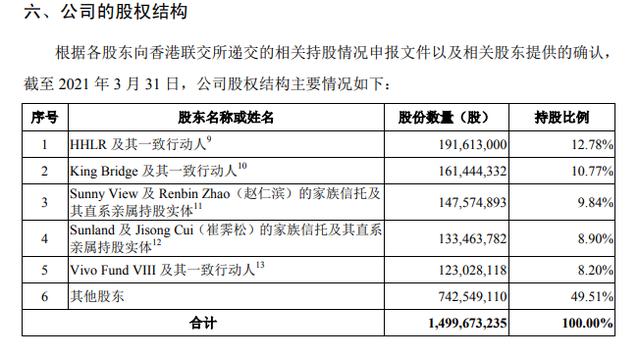 截至2021年3月31日,高瓴旗下的HHLR及其一致行动人为诺诚健华第一大股东,合计持股比例为12.78%,直接持有公司5%以上股份的主要股东之间不存在一致行动关系,公司任何单一股东均无法控制股东大会或对股东大会决议产生决定性影响。