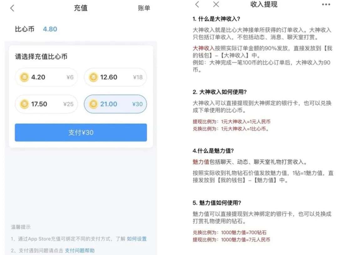 据林贝介绍,比心除抽成高外,提现要求也很苛刻。“过去随时提现、不限金额,现在最低提现金额100币且必须是10的倍数,还规定必须是每周二四日。”