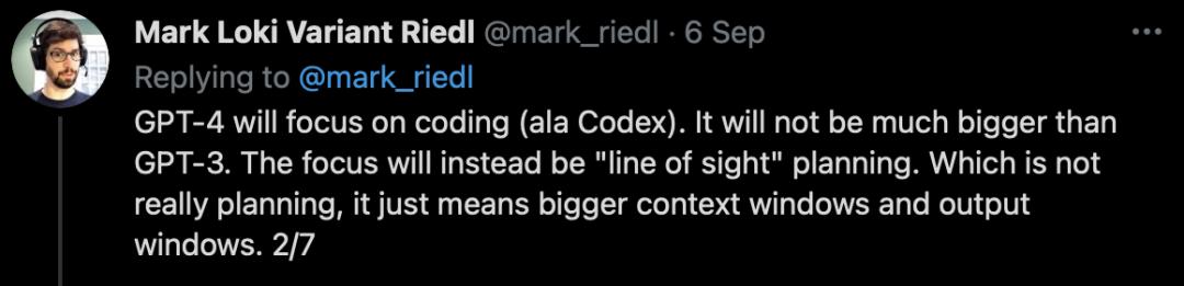 对于即将推出的语言模型GPT-4,虽然规模不会比GPT-3更大,但是会更加侧重代码的生成能力。