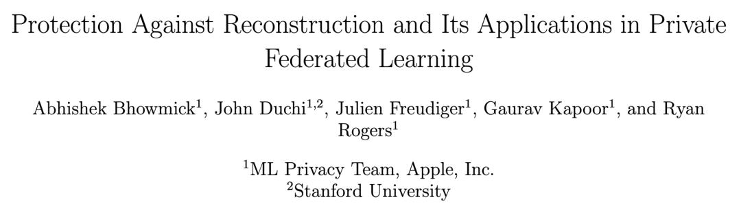 2019年,苹果与斯坦福大学合作,发表了一篇名为「保护重构及其在私有联合学习中的应用」的研究论文,展示了以前不可能实现的大规模本地私有模型训练的实用方法。