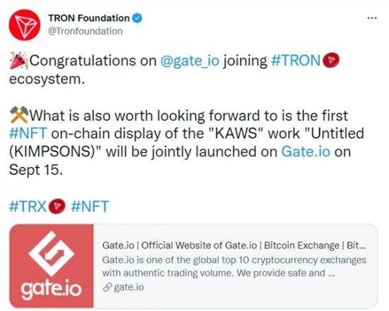 致敬KAWS系列盲盒是Gate.io接入波场之后的首个活动,两者的结合,将为NFT行业带来更多新的发展活力和更大的可能性,实现1+1>2的理想效果,想必未来双方还将在技术、市场等方面展开系列深入合作。